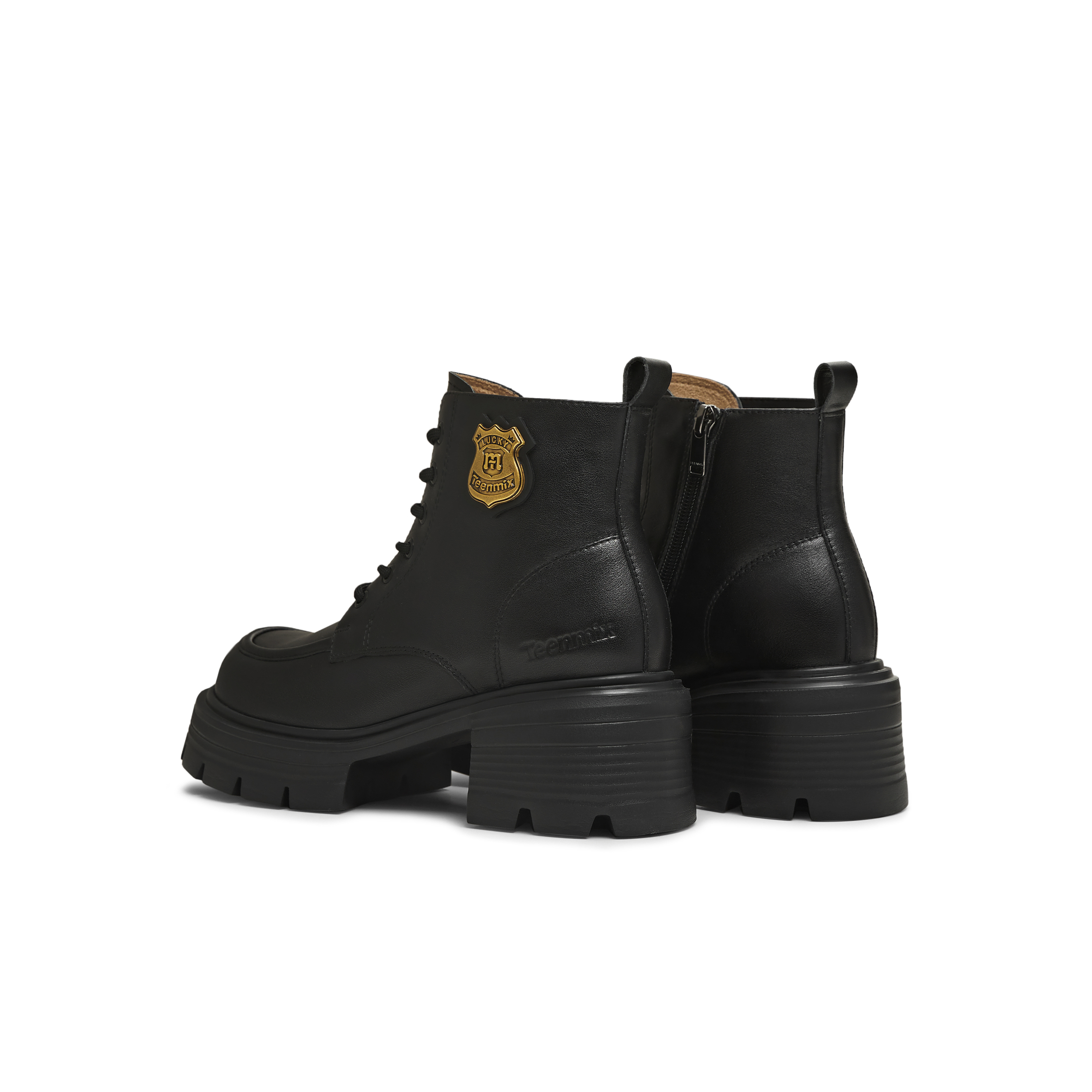 天美意2025冬新款商场同款粗跟复古英伦风短靴女马丁靴CMJ45DD5