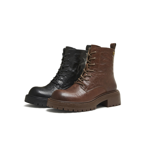 天美意2025冬新款系带复古百搭短靴户外潮流女马丁靴KDX20DZ5
