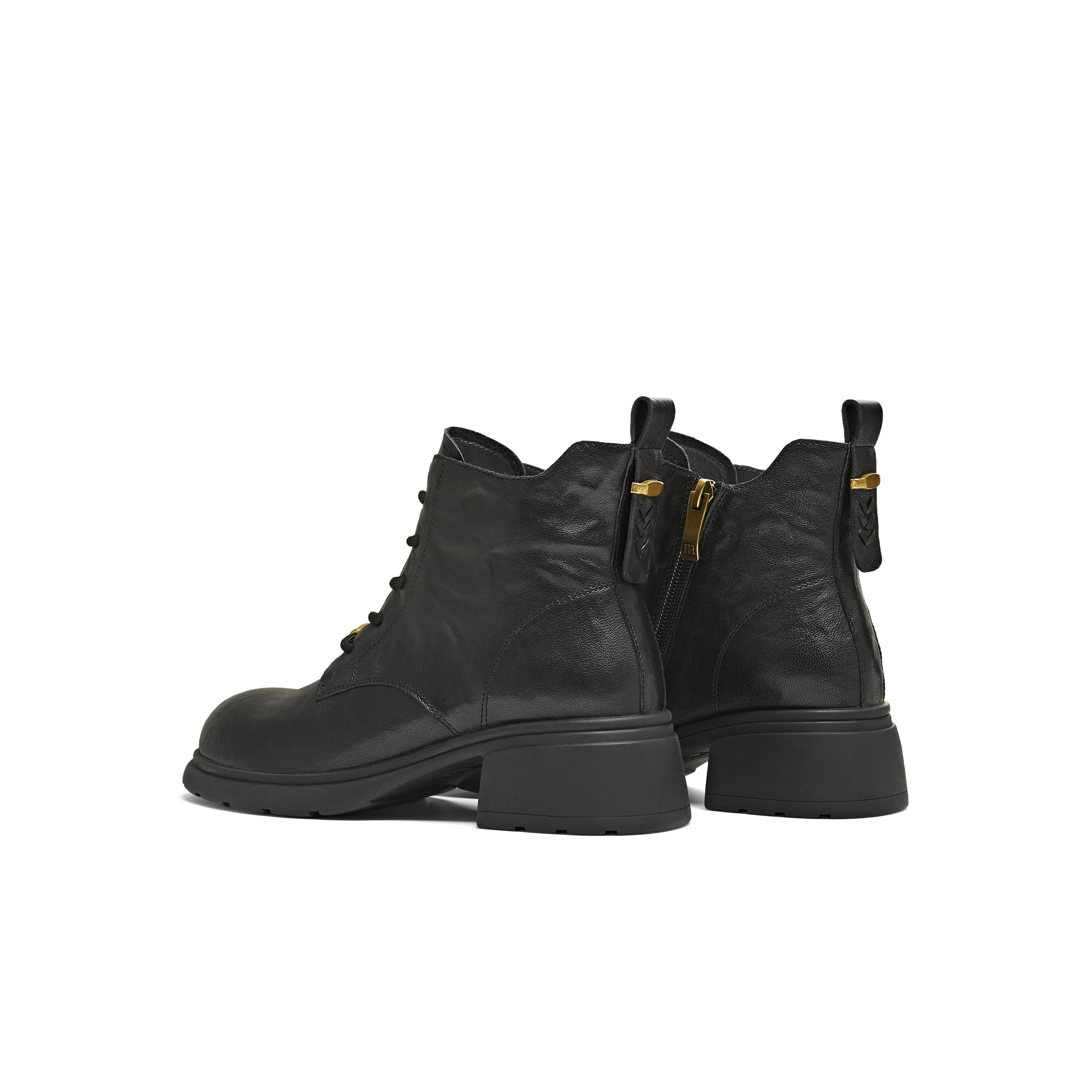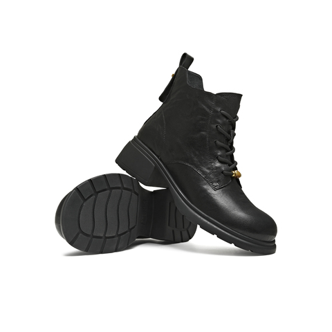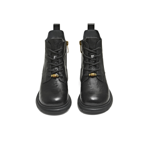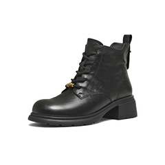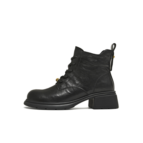 天美意2025冬新款圆头复古纯色系带通勤上班女马丁靴KDX23DD5