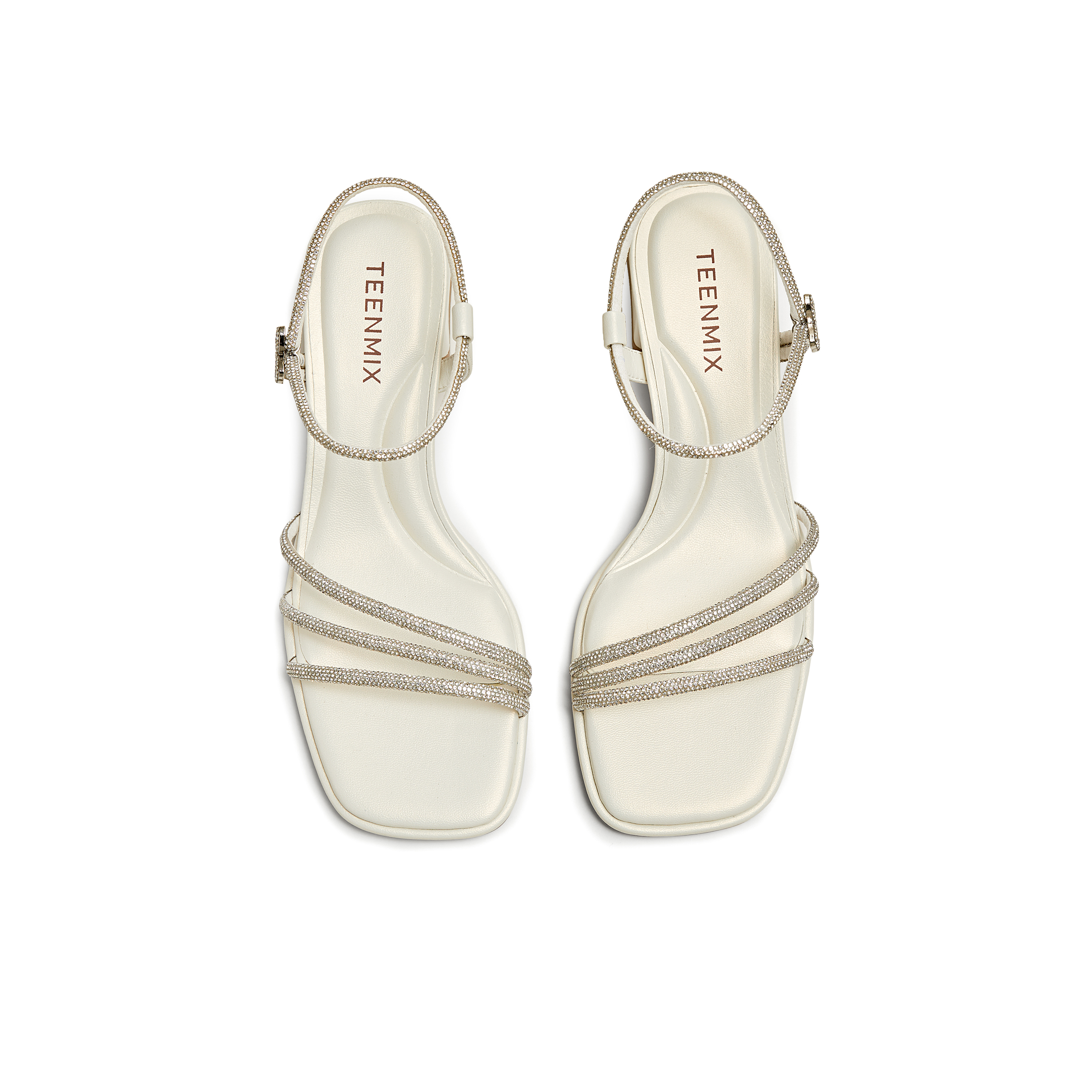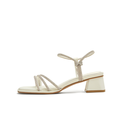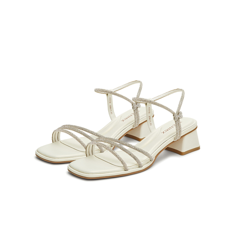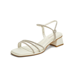 天美意2025夏新款粗跟通勤珠光时装凉鞋法式女一字带凉鞋KI012BL5