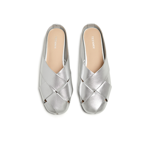 天美意2025夏新款编织懒人包头半拖平底外穿女穆勒鞋KT087BH5