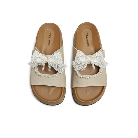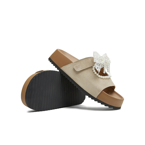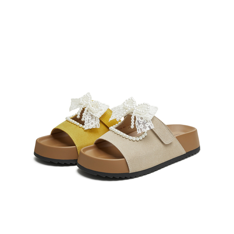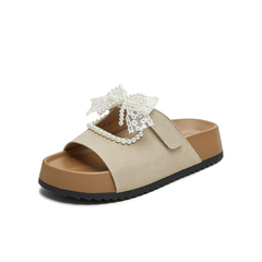 天美意2025夏新款蝴蝶结厚底百搭出游外穿沙滩女一字拖KT098BT5