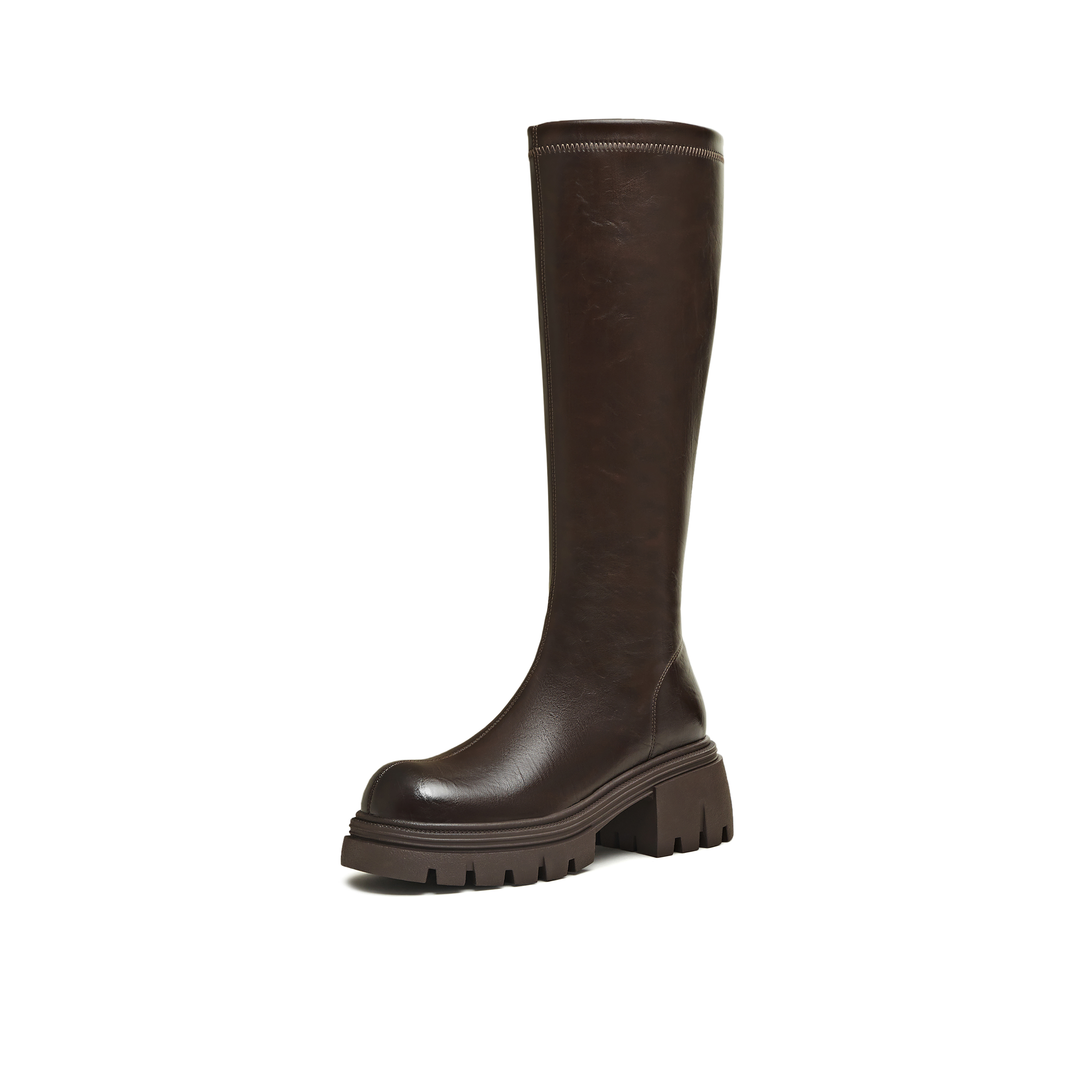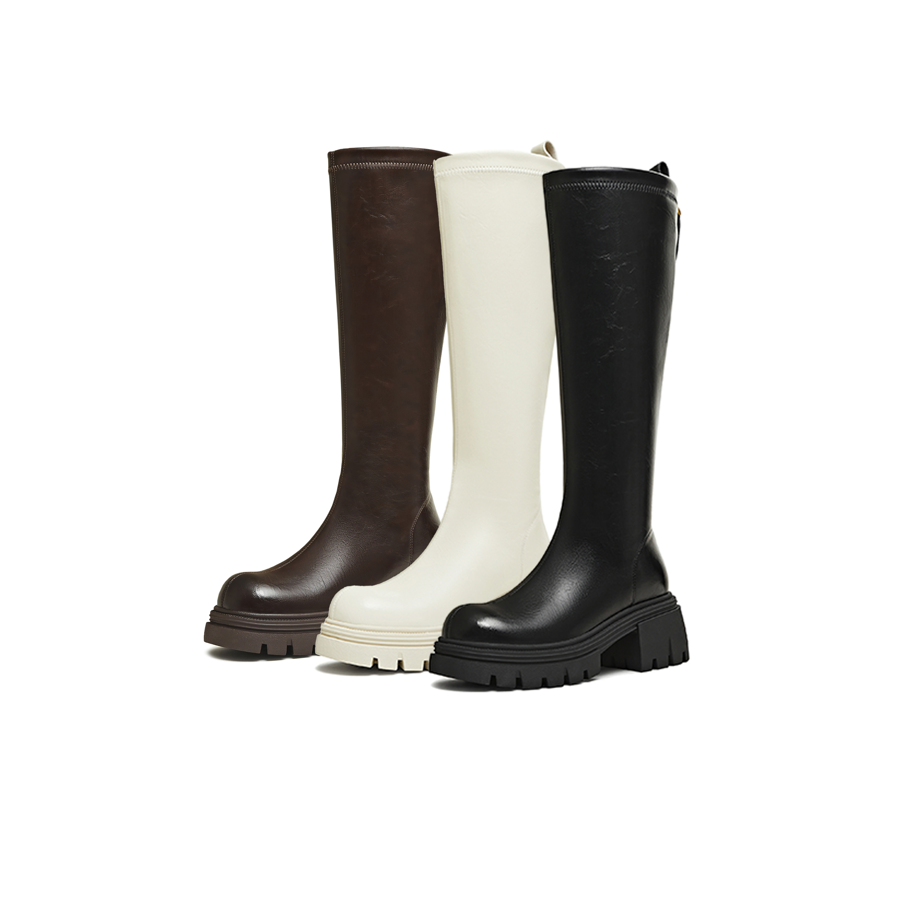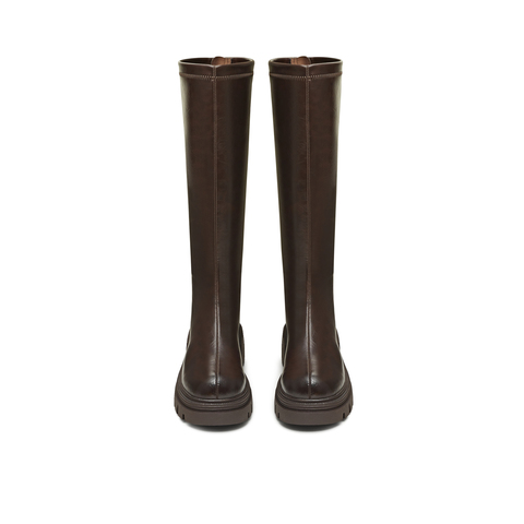 天美意2025冬新款直筒显瘦百搭厚底潮流纯色女弹力靴KTX21DG5
