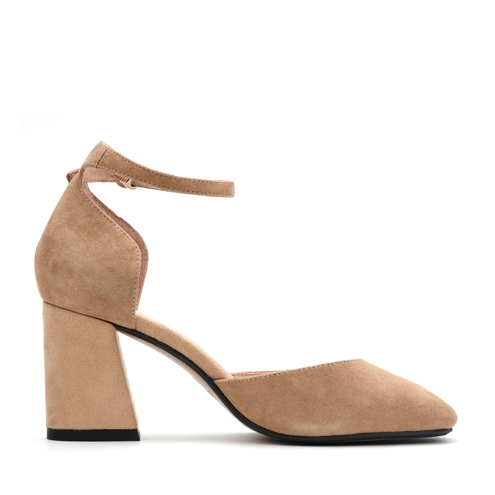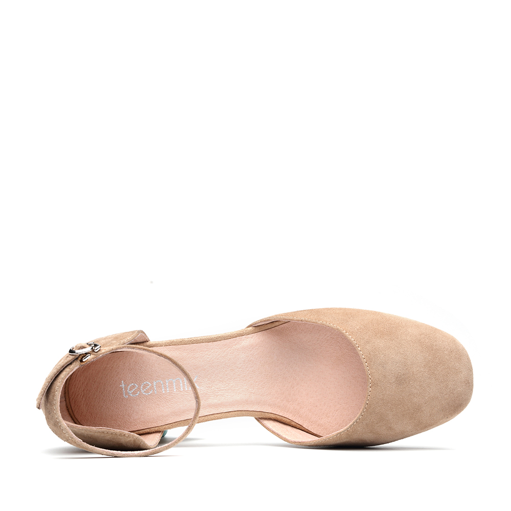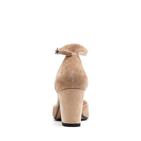 Teenmix/天美意春杏色羊皮复古方头优雅性感一字带女凉鞋R1702AK7