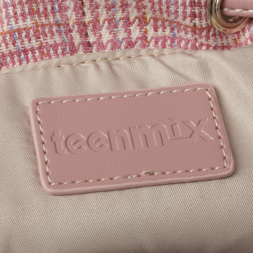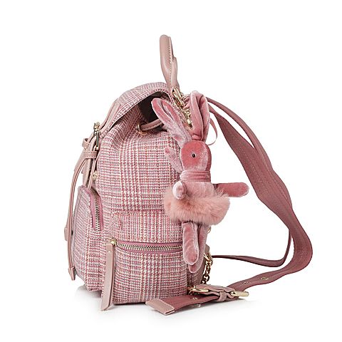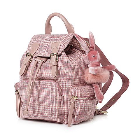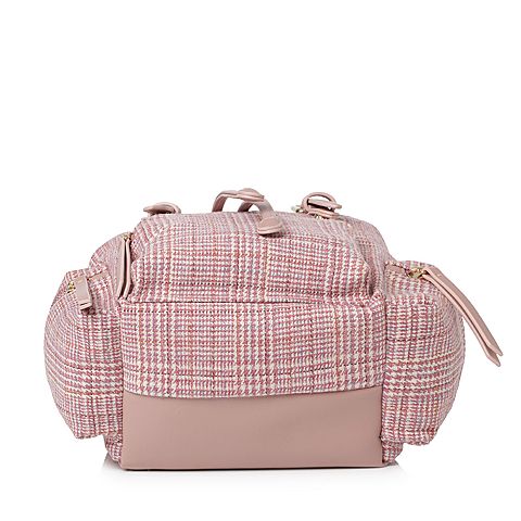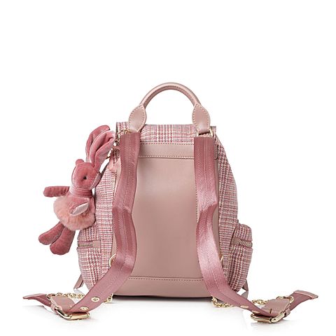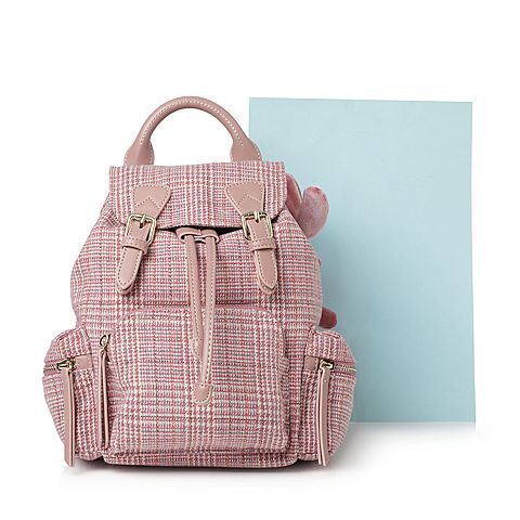 Teenmix/天美意春专柜同款粉白色格纹休闲学院风双肩包女包X1470AX8