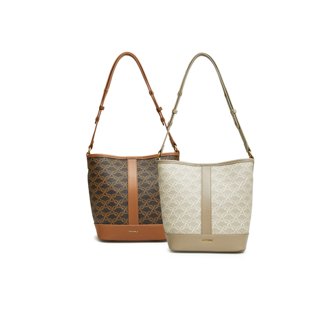 天美意2024春新款商场同款复古时尚通勤水桶包女斜挎包X2816AX4