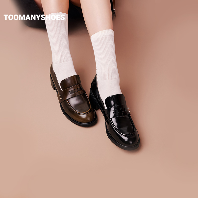 Toomanyshoes秋色梧桐学院风复古皮鞋厚底乐福鞋