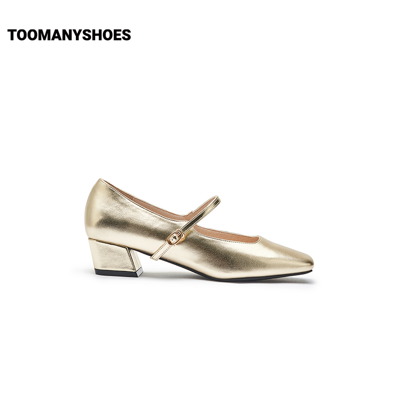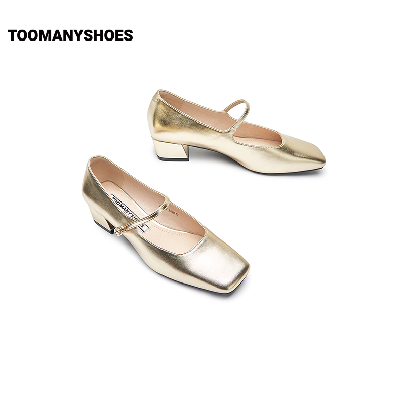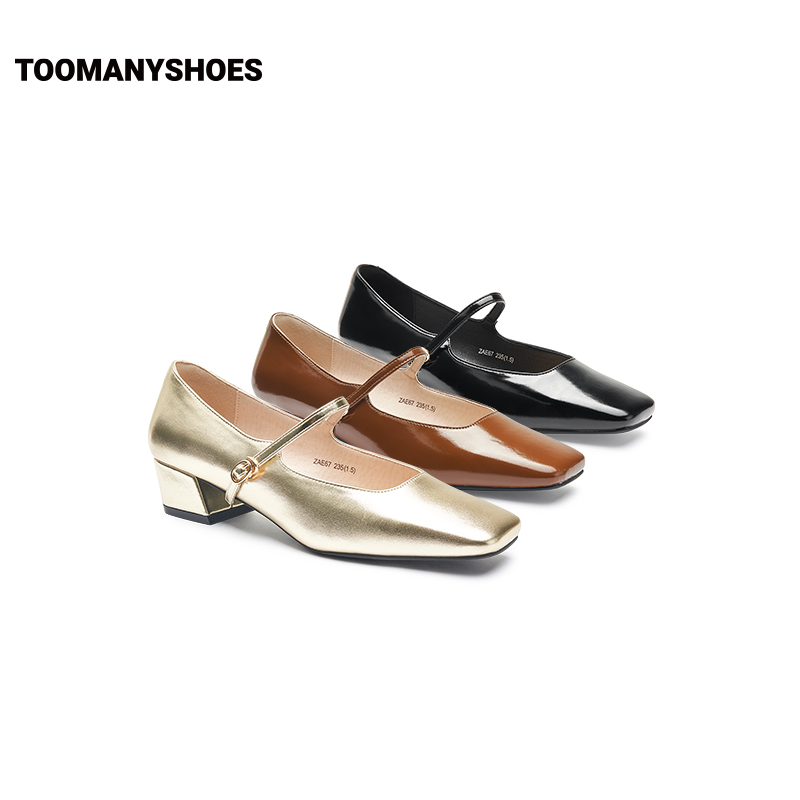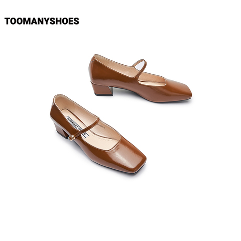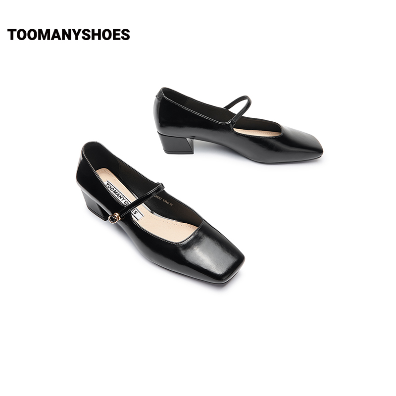 Toomanyshoes女鞋2024新款朝酒晚舞方头粗跟小香风单鞋复古玛丽珍