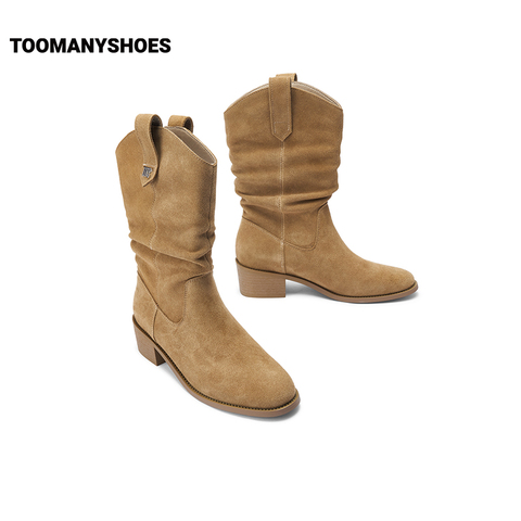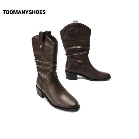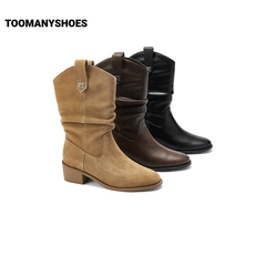 孙千同款Toomanyshoes秋日记忆美拉德堆堆靴骑士靴女