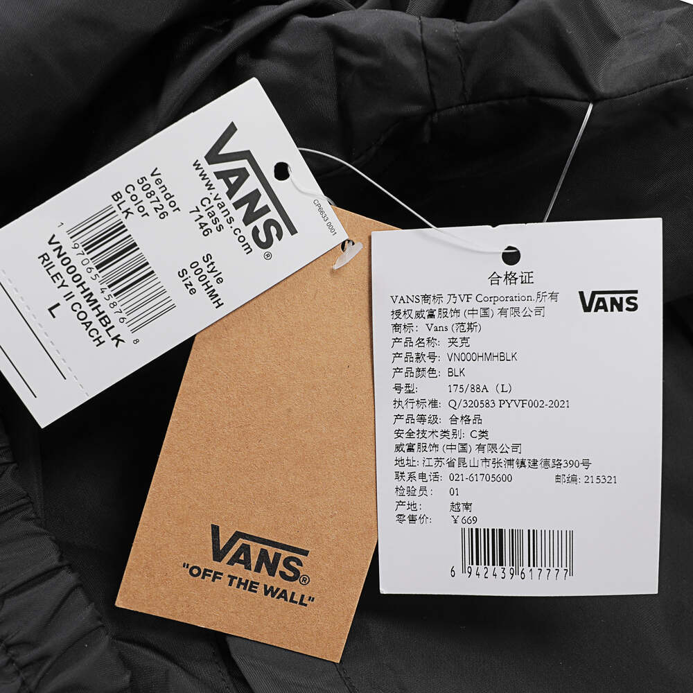 VANS范斯2024男子Riley II Coach Jacket梭织连帽外套VN000HMHBLK