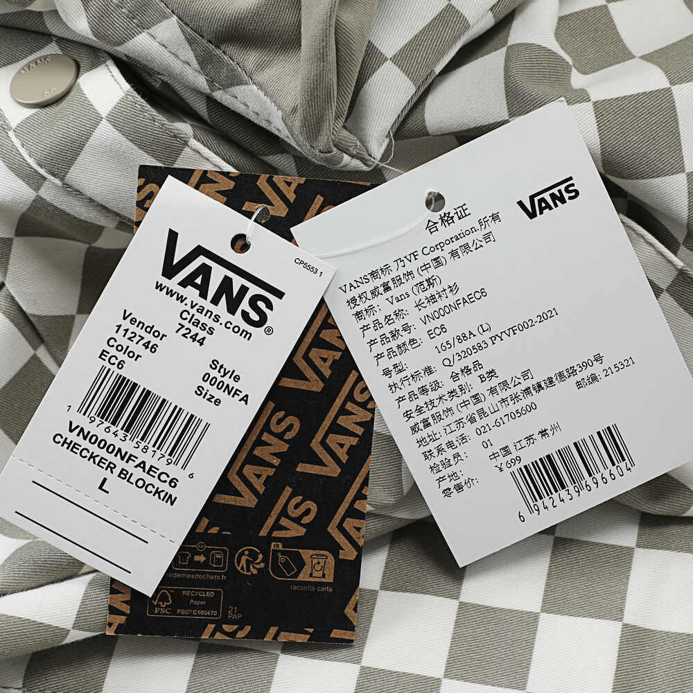 VANS范斯2025女子CHECKER BLOCKING SHIRT针织长袖衬衫VN000NFAEC6