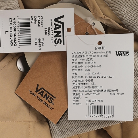 VANS范斯2024男子ZQ QUILTED JACKET薄羽绒服-短VN000P6N4MG