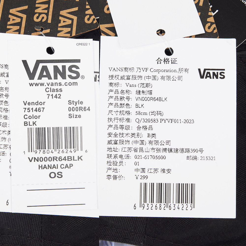 VANS范斯2025中性HANAI CAP弯沿帽VN000R64BLK