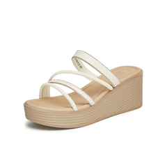天美意2024夏新款商场同款坡跟增高条带百搭露趾女拖鞋CVK20BT4¥169